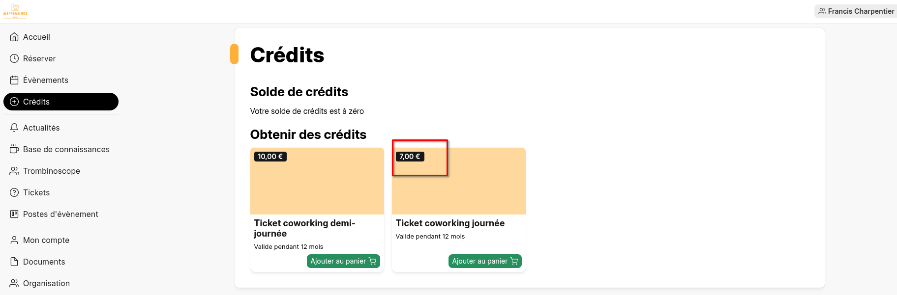 En effet nous voulons créer un article “Pass de XX crédits” et que le nombre crédits achetés par l’utilisateur soit incrémenté sur son total de crédit dans l’espace booking.