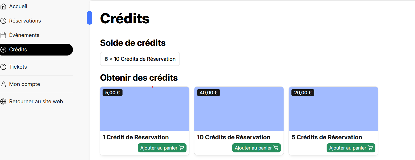 Pour le titre, ici l’usager n’a pas acheté 5 fois le pack de 5 Crédits de réservations ?