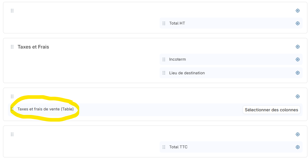 Problème, je ne peux pas enlever la ligne de remise additionnelle qui était déjà là (surlignée en jaune)… Car celle-ci fait partie d’une table de “taxes et frais” que je ne peux pas modifier dans le format d’impression.