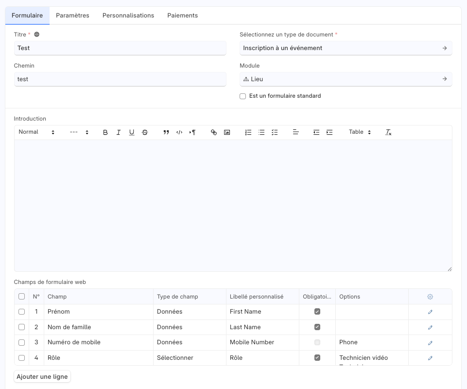 Le rĂ©sultat est le mĂȘme sur le site de dĂ©monstration avec le formulaire event-registration-form et son champ Nombre de places rĂ©servĂ©es