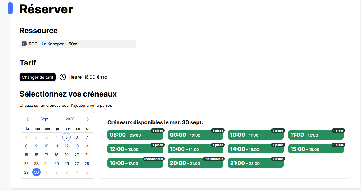 Par exemple : Impossible de réserver mardi de 16h à 17h ou de 20h à 21h.