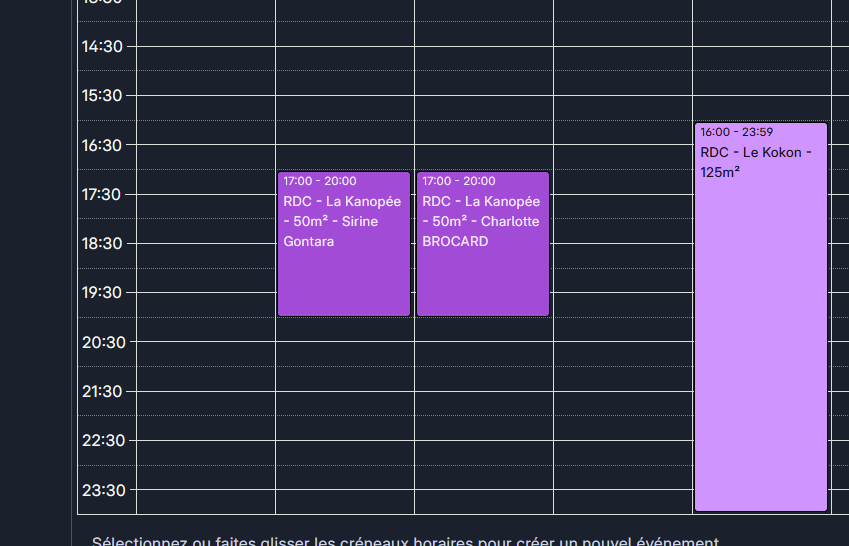 J’ai remarqué que le calendrier booking s’affiche à chaque demie-heure si bien que les réservations ne peuvent être juxtaposées.