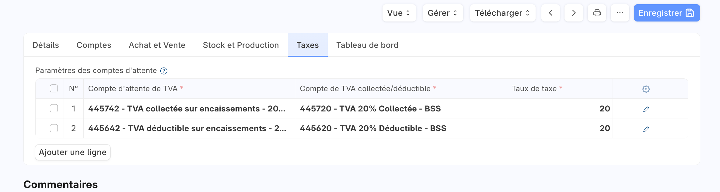 J’ai dans ma société paramétré les compte de TVA d’attente :