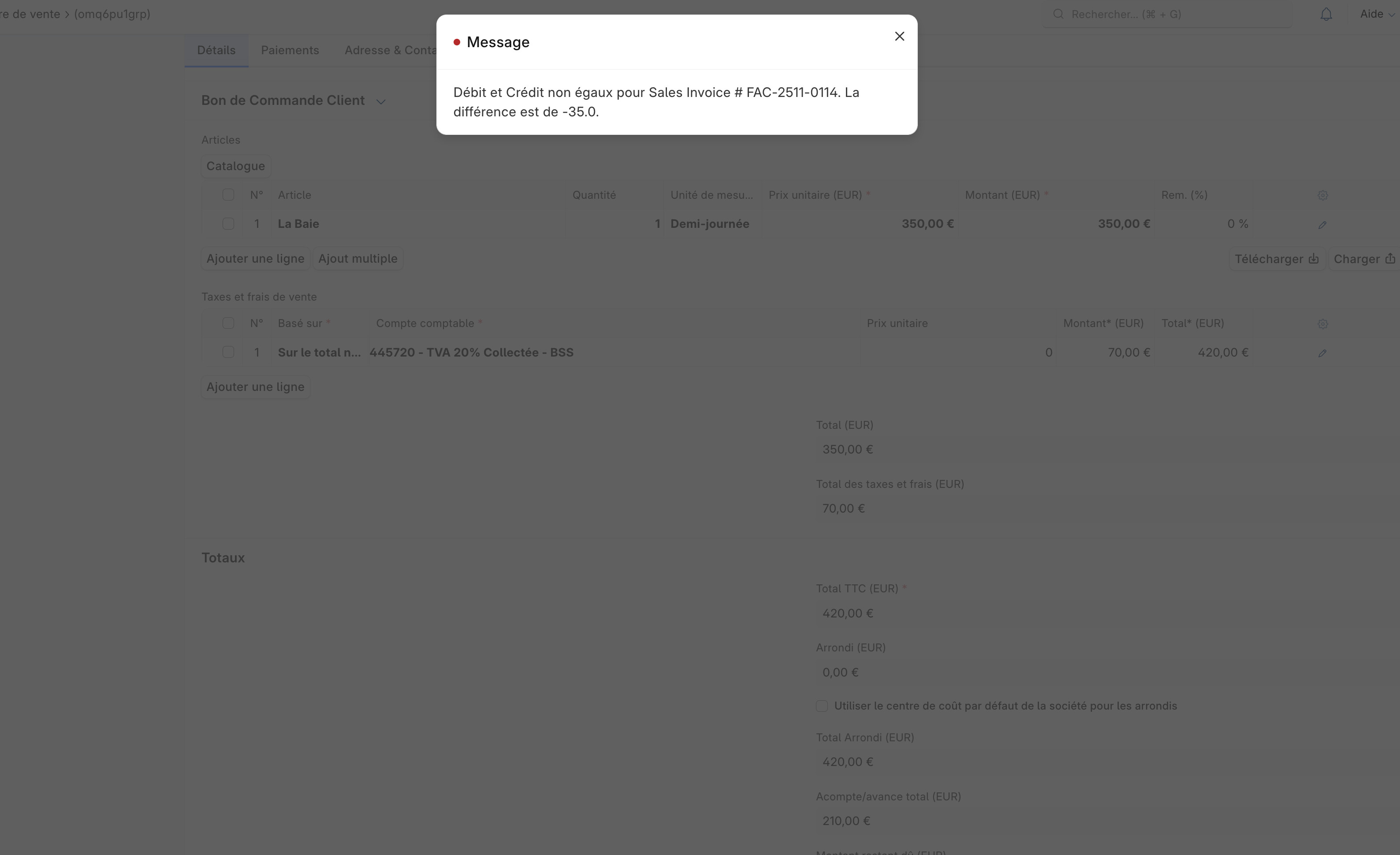 Cela arrive en générale lorsque les comptes comptables ne correspondent pas entre la facture d’acompte et la facture de solde.