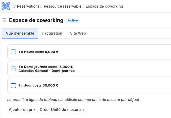 Dans le paramétrage, il y a une liste de tarifs dans la Ressource Réservable : contient-elle au moins un tarif ?
