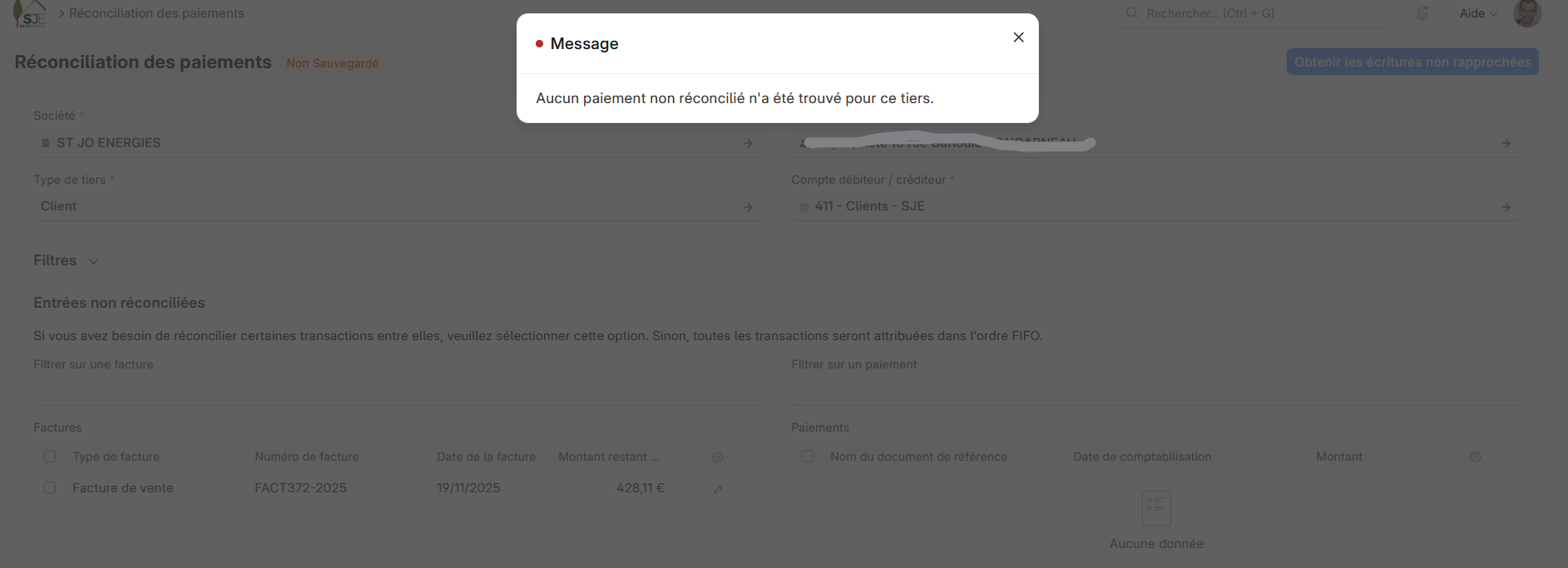 En effet, autant pour moi, l’outil de réconciliation des paiements ne permet pas gérér ce genre de cas.