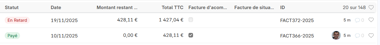 J’ai soldé la facture d’acompte,