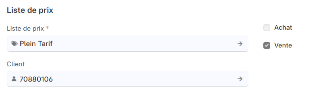 J’ai créé un “prix de l’article” spécifique, j’ai dû lui mettre une liste de prix, puisque c’est obligatoire. Mon client étant par ailleurs en “plein tarif” j’ai appliqué la même liste.