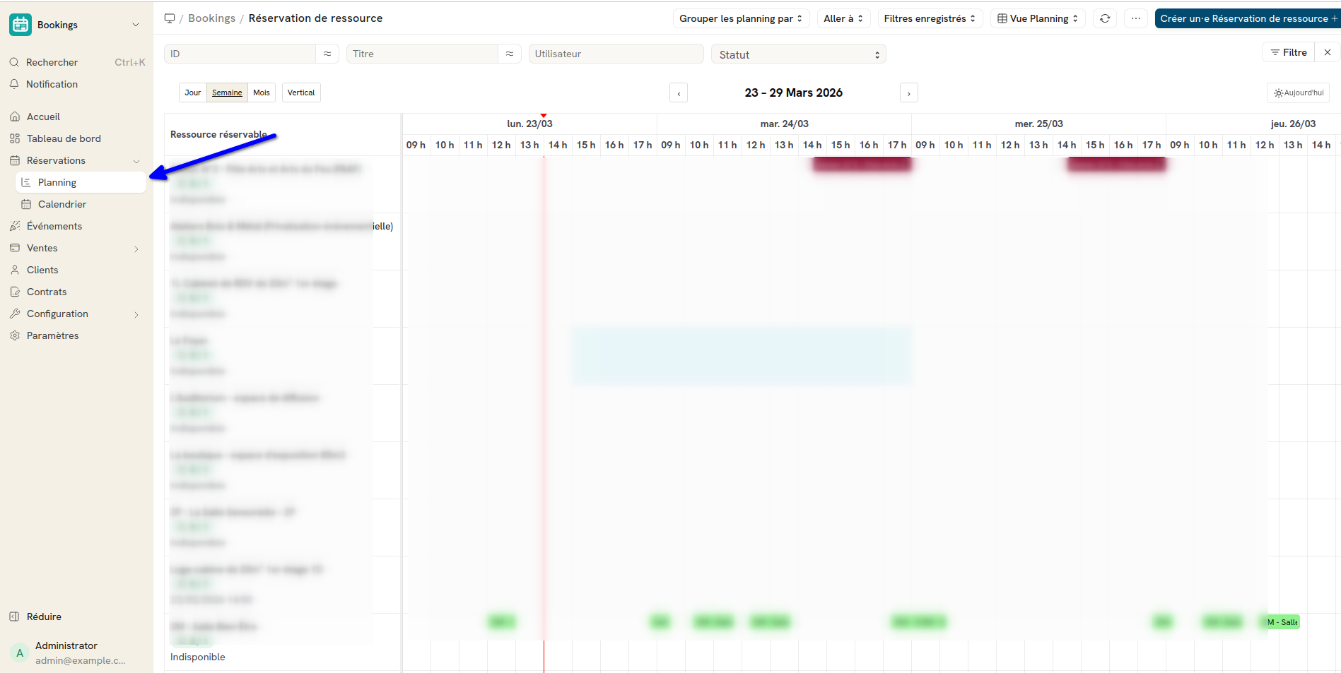 Je n’ai d’ailleurs plus les calendrier qui permettent de réserver les salles, est-ce que c’est lié ou faut-il les remettre en place ?