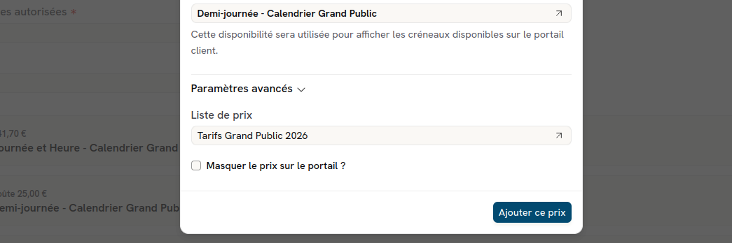 Mais ça n’a pas résolu le problème. Cependant, j’ai remarqué que j’avais deux listes :Prix public 2026 et prix résident 2026. alors que la première fonctionne, la seconde n’affiche pas les tarifs, malgré que les configurations soit bien paramétré. Je pense ne pas être loin du but, mais j’avoue que je ne trouve pas le chêneau manquant. Cela doit bien venir de la liste Résidents 2026 mais je ne sais pas pourquoi..